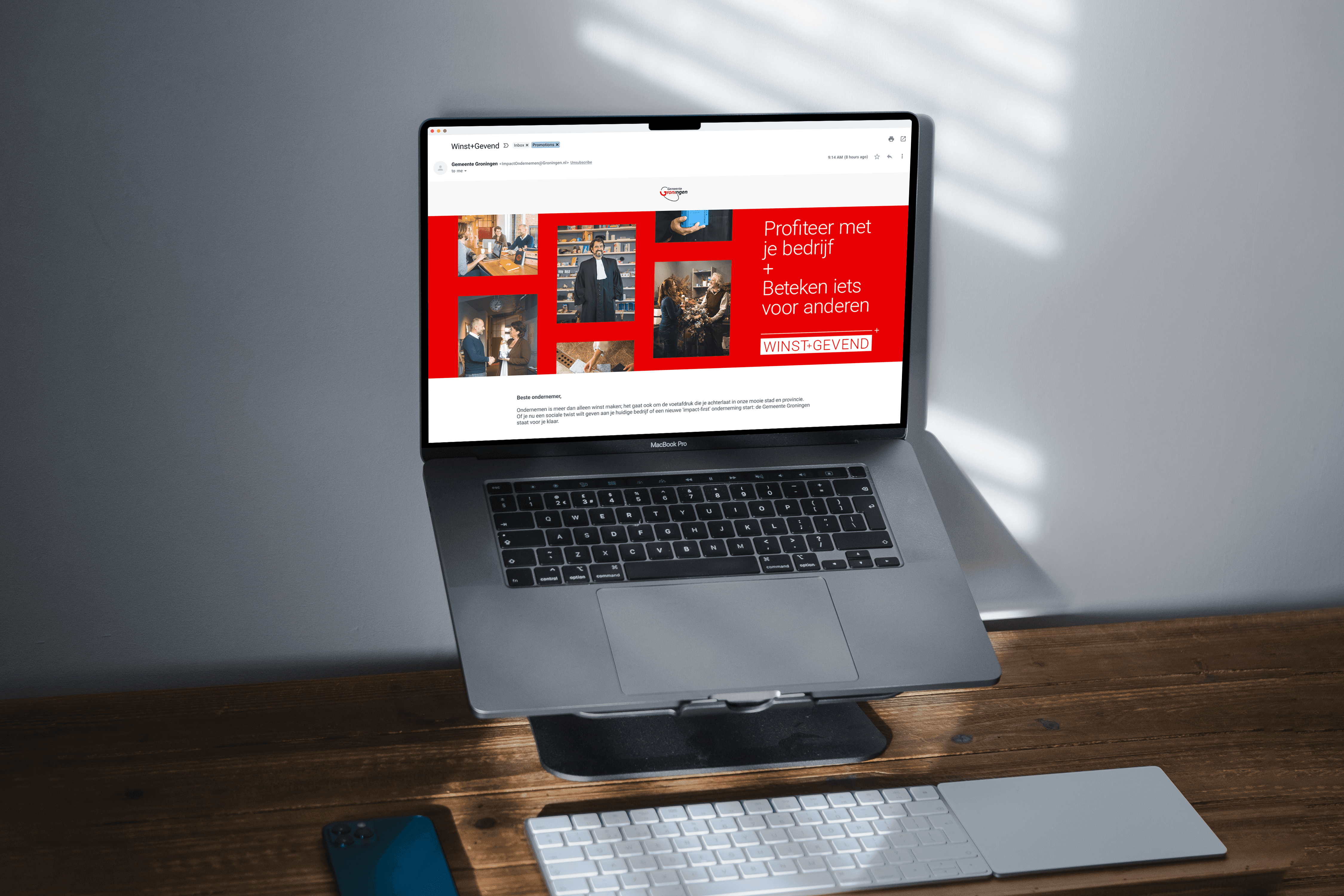Op basis van het campagneconcept heb ik visuele uitingen gemaakt, waaronder verschillende posters, social media posts en een nieuwsbriefheader. Deze uitingen bevatten portretten en de verhalen van zes verschillende Groningse ondernemers.
